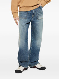 straight-leg jeans Highlights - Blue - Concealed fly and button fastening - Belt loops - Two side inset pockets - Two rear patch pockets Imported Composition Cotton 100% Washing instructions Machine Wash