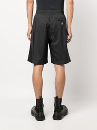 straight-leg track shorts Highlights - Black - Logo patch to the side - Elasticated waistband - Straight leg - Rear welt pocket - Knee-length Imported Composition Outer: Polyester 100% Lining: Polyester 100% SIZE & FIT Model measurements Height 6 ft 1 in(1.86 m) Bust/Chest 36.61 in(93 cm) Hips 37 in(94 cm) Waist 28.74 in(73 cm) FittingInformation Designed for relaxed fit, offering a comfortable loose fit over the leg Adjust this piece’s waistband to your preference using the drawstring Made from a lightweight non-stretch fabric This piece fits true to size – take your usual size
