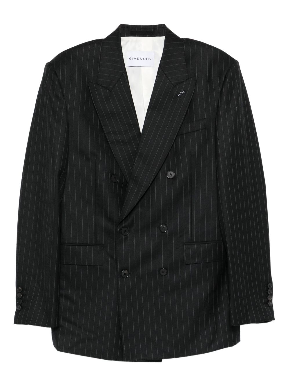 stripe-pattern double-breasted blazer Highlights - Black - Striped pattern - Double-breasted - Button fastening - Peak lapels - Long sleeves - Buttoned cuffs Made in Italy Composition Outer: Wool 100% Lining: Cupro 100%, Viscose 100% SIZE & FIT Model measurements Height 6 ft 0 in(1.84 m) Bust/Chest 37.79 in(96 cm) Hips 37 in(94 cm) Waist 31.49 in(80 cm) Washing instructions Dry Clean Only