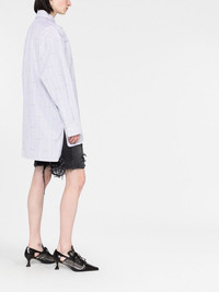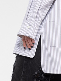 tailored striped shirt grey cotton vertical stripe print tailored cut short side slits classic collar front button fastening straight hem Made in Italy Composition Cotton 100% SIZE & FIT Model measurements Height 5 ft 12 in(1.82 m) Bust/Chest 34.25 in(87 cm) Hips 37.79 in(96 cm) Waist 25.19 in(64 cm) FittingInformation This piece fits true to size. We recommend you get your regular size Cut for a loose fit Made with a mid-weight non-stretch fabric Washing instructions Machine Wash