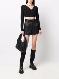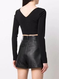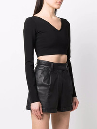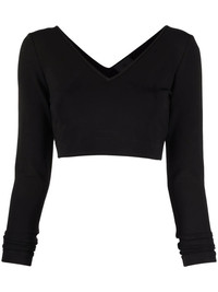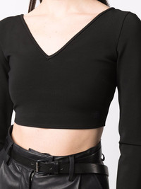 V-neck long-sleeve top Givenchy's SS22 collection features bold silhouettes. Showcased in this innovative take on this long-sleeve top, the garment features a V-neck, V-back and cropped hem. This outline is also emphasised through its tonal colourway. Made in Italy Composition Viscose 100% SIZE & FIT Model measurements Height 5 ft 10 in(1.78 m) Bust/Chest 29.52 in(75 cm) Hips 35.03 in(89 cm) Waist 22.83 in(58 cm) FittingInformation This piece fits true to size. We recommend you get your regular size Cut for a close fit Made with a mid-weight stretch fabric Washing instructions Dry Clean Only
