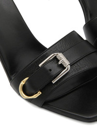 Voyou 90mm leather sandals Highlights - Black - Calf leather - Decorative buckle detail - Slip-on style - Square toe - Open toe - Single toe strap - Branded insole - 90mm high heel Made in Italy Composition Lining: Calf Leather 100% Sole: Calf Leather 100% Outer: Calf Leather 100% SIZE & FIT Measurement HEEL 3.54 in(9 cm)