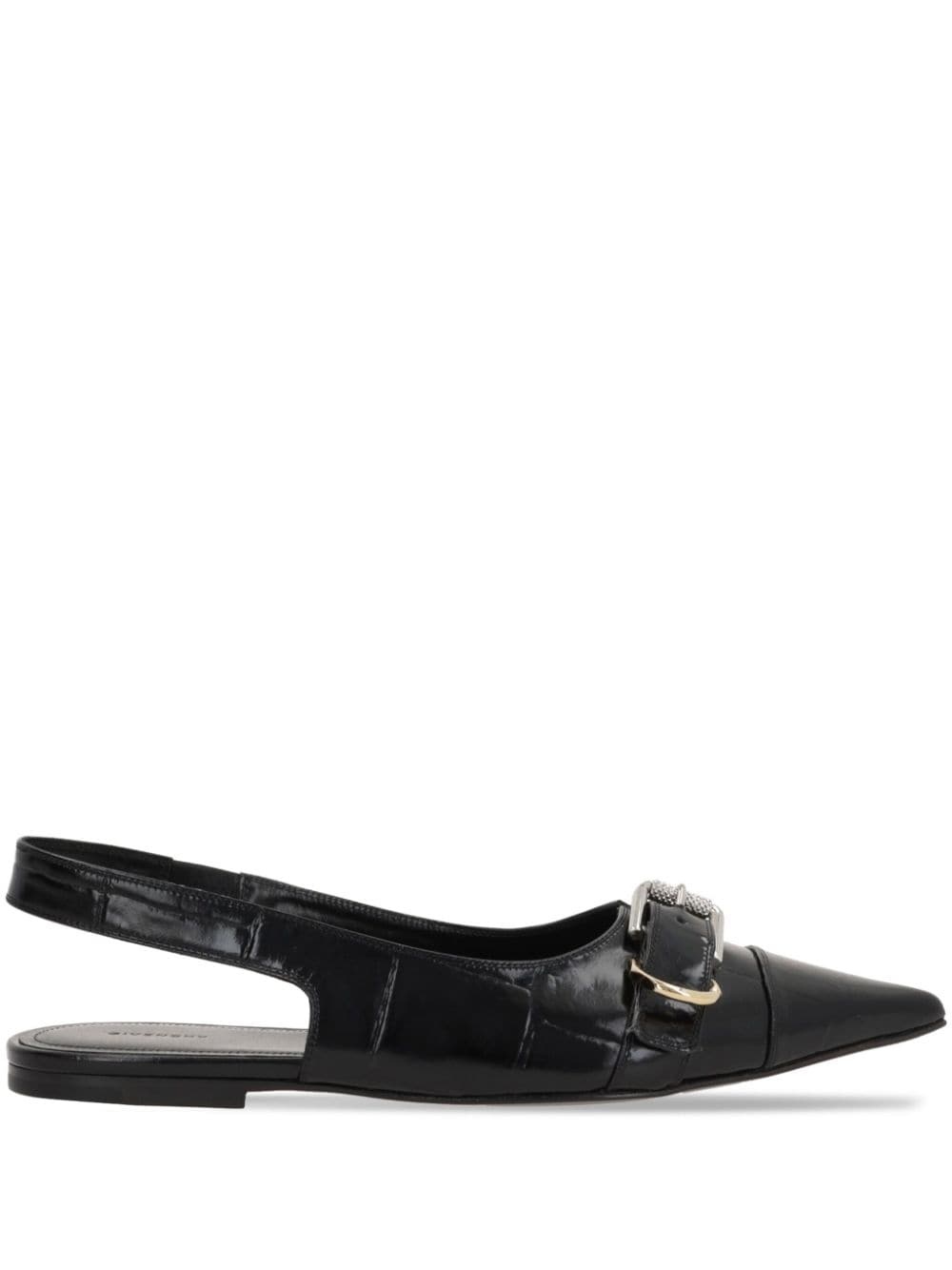 Voyou ballet flats Highlights - Black - Calf leather - Embossed crocodile effect - Slip-on style - Low stacked heel - Elasticated slingback strap - Decorative buckle detailing - Pointed toe - Branded footbed - Leather sole Made in Italy Composition Outer: Calf Leather 100% Lining: Leather 100% Sole: Leather 100%