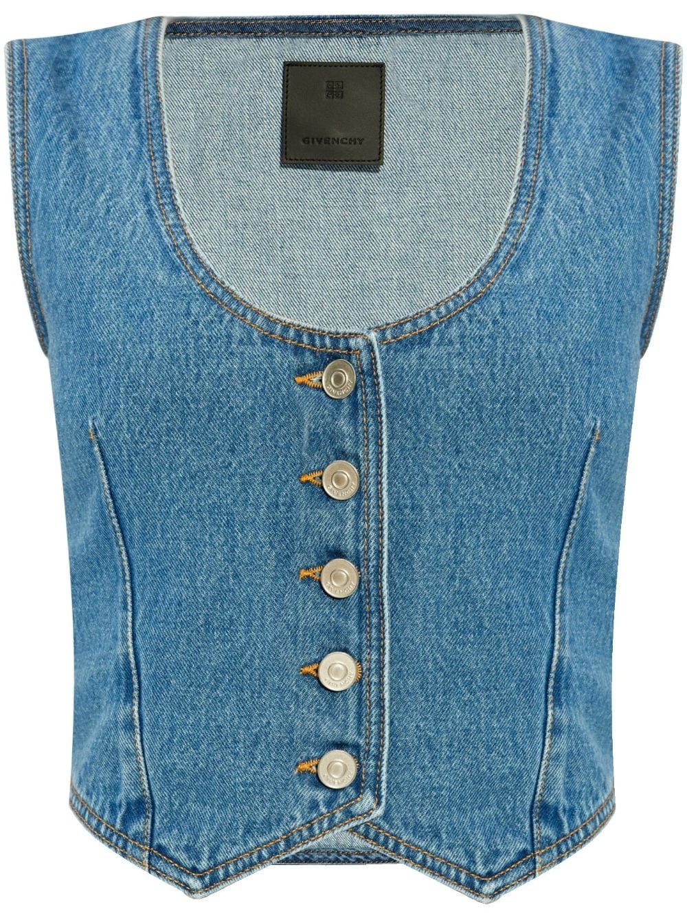 Voyou denim waistcoat Highlights - Indigo - Blue - Cotton - Denim - Logo-engraved buttons - Scoop neck - Front button fastening - Rear buckle fastening - Cropped Made in Italy Composition Cotton 100% SIZE & FIT Measurement LENGTH 17.51 in(44.5 cm) WAIST 32 in(81.3 cm) BUST 32.99 in(83.8 cm)