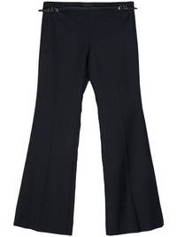 Voyou flared trousers Highlights - Midnight blue - Wool-mohair blend - Interlock twill weave - Concealed side zip fastening - Low-rise - Elasticated waistband - Belted waist - Side welt pocket - Pressed crease - Straight leg - Flared hem Made in Italy Composition Lining: Cotton 100% Outer: Wool 73%, Mohair 27% Washing instructions Dry Clean Only