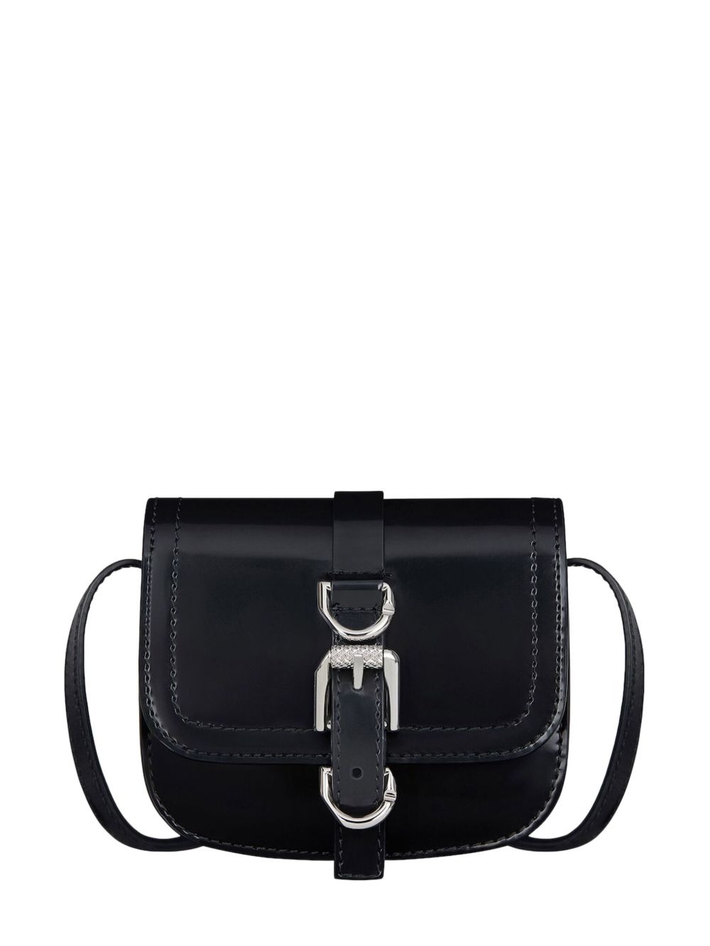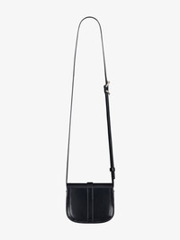 Voyou Neck Crossbody bag in shiny leather Mini crossbody bag in spazzolato calfskin leather. Highlights - Mini crossbody bag in spazzolato calfskin leather. - Color black - Dimensions: - Voyou line. - Flap with press button closure. - Thin adjustable strap offering crossbody carrying. - Givenchy engraved metal buckles. - Silvery-finish metal details. - One main compartment. - Minimal drop: 19.7 in / 50cm and maximal drop: 24.4 in. / 62cm - Can fit cardholder and keys. Made in Italy Composition Outer: Leather 100%