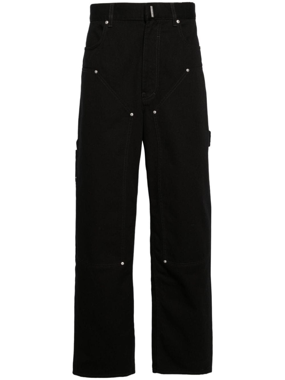 wide-leg logo-plaque carpenter jeans Highlights - Black - Cotton - Denim - Carpenter-style - Wide leg - Logo plaque to the rear - Embroidered logo to the rear - Tonal stitching - Metal eyelet detailing - Loop strap - Belt loops - Concealed front fastening - Two front pouch pockets - Two rear patch pockets - Straight hem Made in Italy Composition Outer: Cotton 100% Lining: Polyester 65%, Cotton 35% SIZE & FIT Model measurements Height 6 ft 2 in(1.87 m) Bust/Chest 36.41 in(92.5 cm) Hips 37 in(94 cm) Waist 29.52 in(75 cm) FittingInformation Designed with a wide leg, offering a loose and roomy fit Made from a midweight non-stretch fabric This piece fits true to size – take your usual size