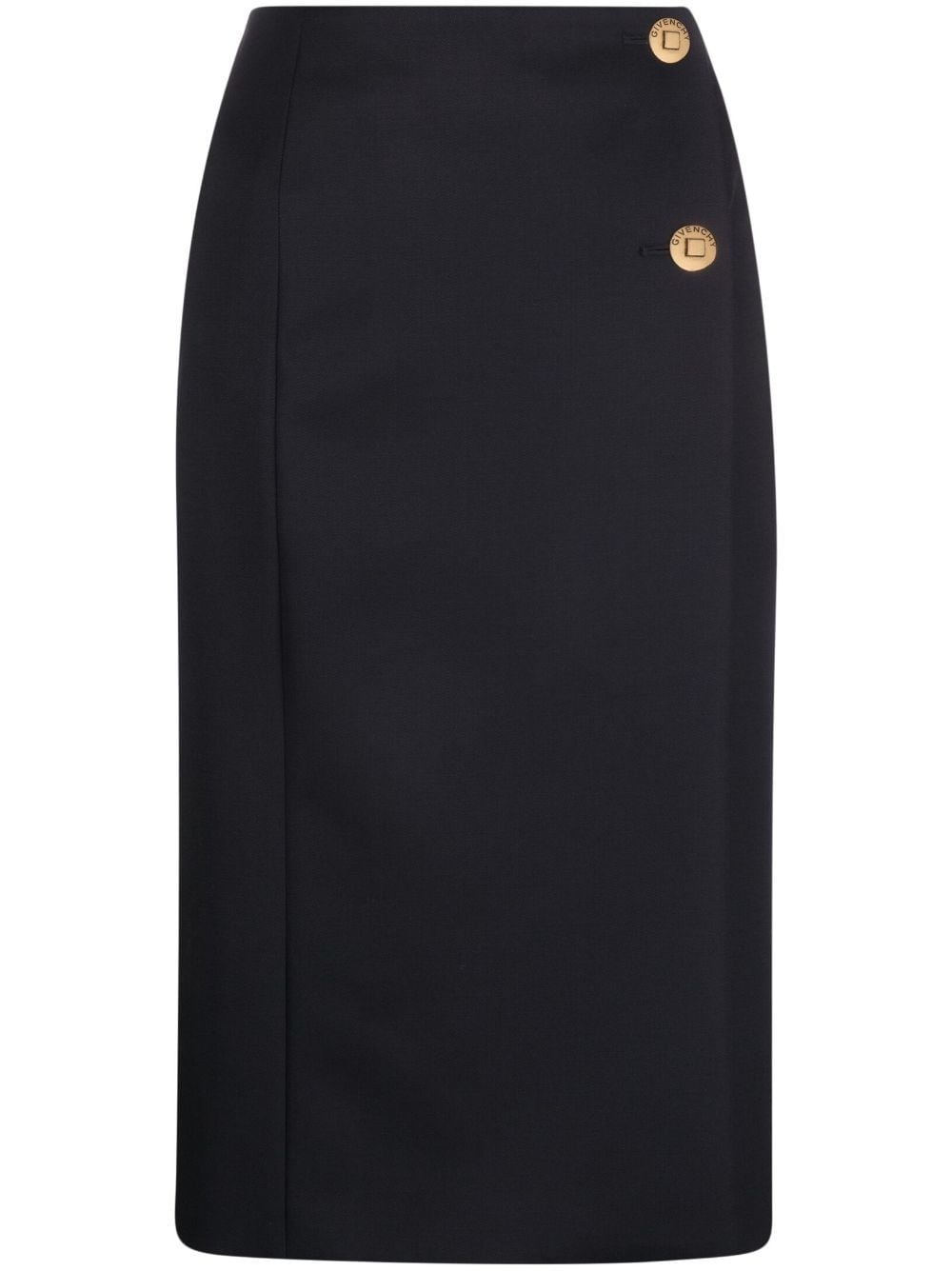 wool-blend straight skirt Highlights - Navy blue - Wool blend - Gold-tone buttons - Side button fastening - Straight hem - Knee-length Made in Italy Composition Outer: Wool 77%, Mohair 23% Lining: Acetate 73%, Silk 27% SIZE & FIT Model measurements Height 5 ft 11 in(1.8 m) Bust/Chest 33.07 in(84 cm) Hips 37 in(94 cm) Waist 25.59 in(65 cm) FittingInformation This midi-length skirt is intended to be worn just below the waist Made from a midweight non-stretch fabric This piece fits true to size – take your usual size Washing instructions Dry Clean Only