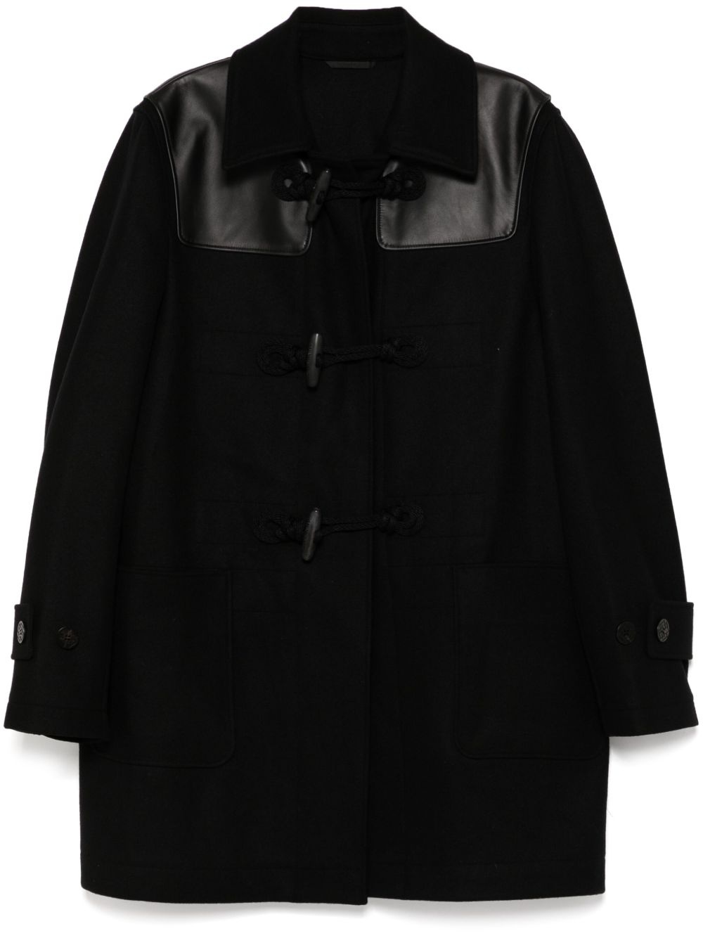 wool duffle coat Highlights - Black - Front toggle fastening - Two front patch pockets - Leather trim Imported Composition Wool 100% SIZE & FIT Model measurements Height 6 ft 2 in(1.87 m) Bust/Chest 33.07 in(84 cm) Hips 35.43 in(90 cm) Waist 26.77 in(68 cm) FittingInformation Designed to be unstructured, offering a loose fit throughout The vented hem offers movement at the rear Made from a midweight non-stretch fabric Washing instructions Dry Clean Only
