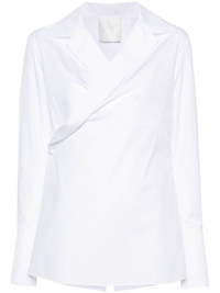 wrap-design poplin shirt Highlights - White - Cotton - Poplin texture - Wrap design - Pointed flat collar - Long sleeves - Buttoned-cuff sleeves - Straight hem - Side button fastening Made in Italy Composition Cotton 100% SIZE & FIT Model measurements Height 5 ft 10 in(1.78 m) Bust/Chest 32.67 in(83 cm) Hips 35.43 in(90 cm) Waist 23.22 in(59 cm) FittingInformation Designed for a slim fit that sits just away from the body offering a close yet comfortable fit Made from a midweight non-stretch fabric This piece fits true to size – take your usual size