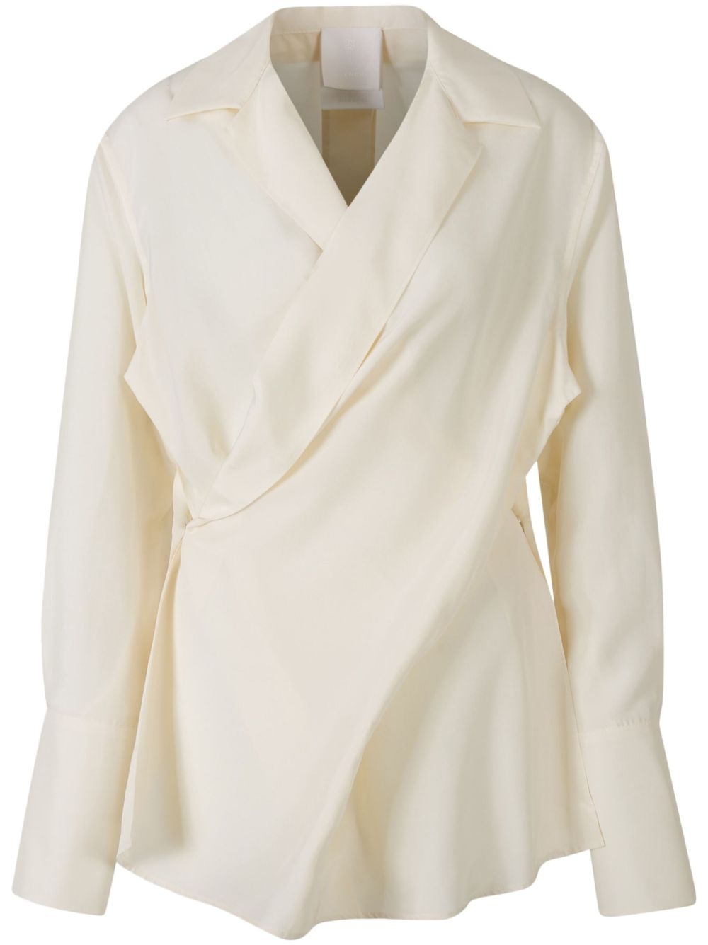 wrap silk shirt Highlights - Light beige - Concealed side fastening - Crossover neck - Buttoned-cuff sleeves - Rear slit Made in Italy Composition Silk 100% Washing instructions Do Not Wash/Do Not Dry Clean