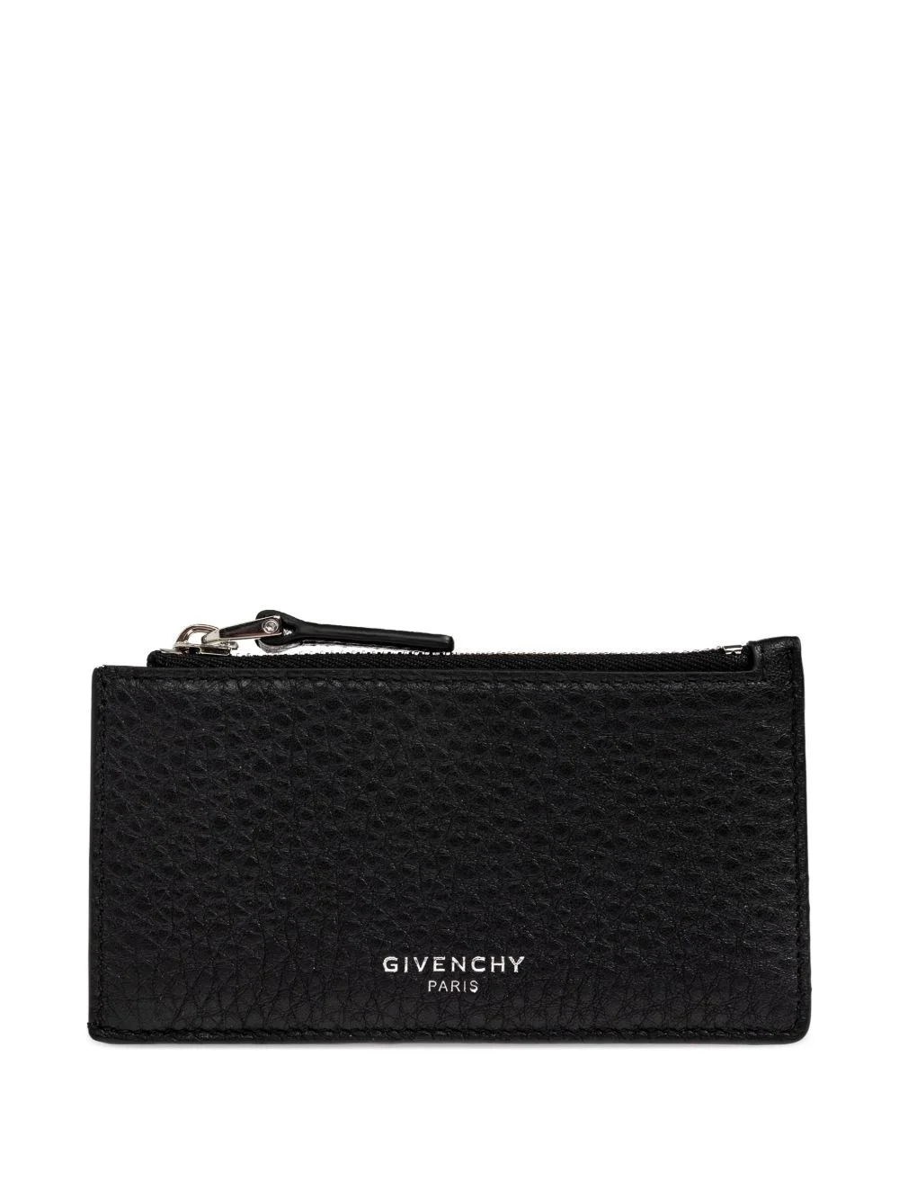 zip leather card holder Highlights - Black - Grained texture - Zip pocket - Card slots Made in Italy Composition Outer: Calf Leather 100% Lining: Lambskin 100%, Viscose 100%