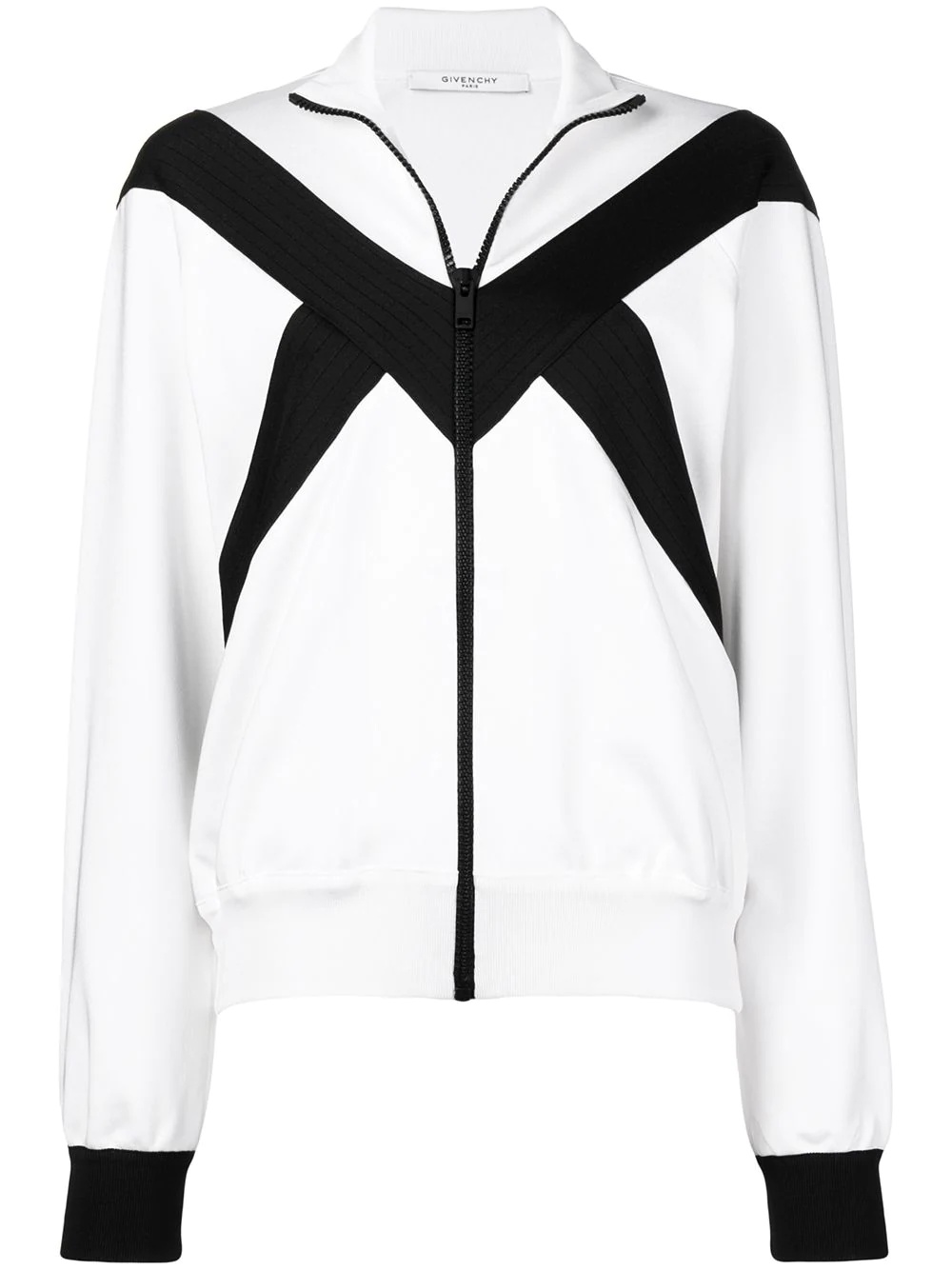 zip-up bomber jacket Clare Waight Keller’s muse at Givenchy this season was a woman who spent much of her life dressing and acting as a man - an androgynous beauty. This black and white zipped up bomber jacket from the collection features a front zip fastening, a ribbed hem and cuffs and diagonal stripes. Made in Italy Composition Viscose 86%, Polyamide 11%, Spandex/Elastane 3% Washing instructions Dry Clean Only