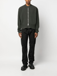 zip-up wool cardigan Highlights - Dark green - Wool - Ribbed knit - Silver-tone hardware - Long sleeves - Front two-way zip fastening - Round neck - Straight hem Made in France Composition Wool 100% SIZE & FIT Model measurements Height 6 ft 1 in(1.85 m) Bust/Chest 38.58 in(98 cm) Hips 37 in(94 cm) Waist 30.31 in(77 cm) FittingInformation Designed to be unstructured, offering a loose fit throughout Made with a midweight knit, this piece offers some stretch This piece fits true to size – take your usual size
