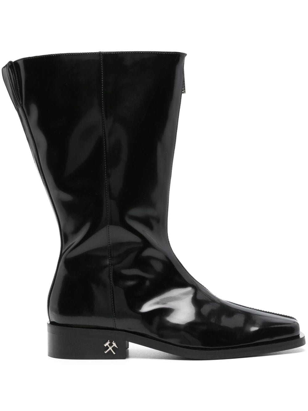 Adem boots Highlights - Black - Calf leather - Brushed finish - Logo plaque - Pull-tab at the heel - Mid-calf length - Front zip fastening - Square toe - Branded leather insole - Rubber sole Imported Composition Sole: Rubber 100%, Calf Leather 100% Lining: Calf Leather 100% Outer: Calf Leather 100% SIZE & FIT Measurement CIRCUMFERENCE 17.32 in(44 cm) HEEL 1.57 in(4 cm) HEIGHT 12.2 in(31 cm) Sole height 0.39 in(1 cm)