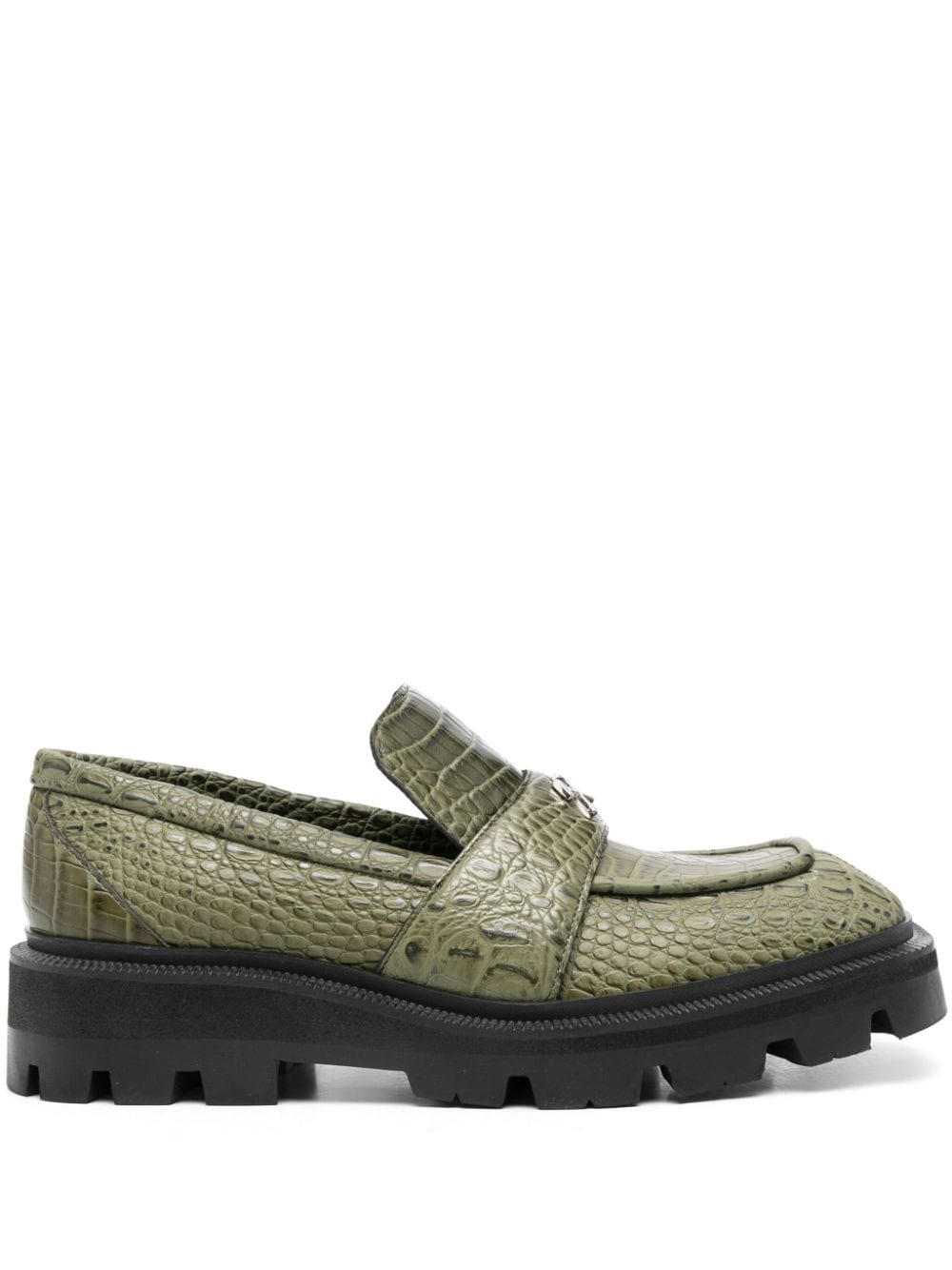 Burak loafers Highlights - Moss green - Artificial leather - Embossed crocodile effect - Slip-on style - Logo plaque - Square toe - Branded insole - Rubber lug sole Imported Composition Outer: Artificial Leather 100% Lining: Artificial Leather 100% Sole: Rubber 100% SIZE & FIT Measurement HEEL 1.77 in(4.5 cm) Sole height 0.98 in(2.5 cm)