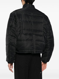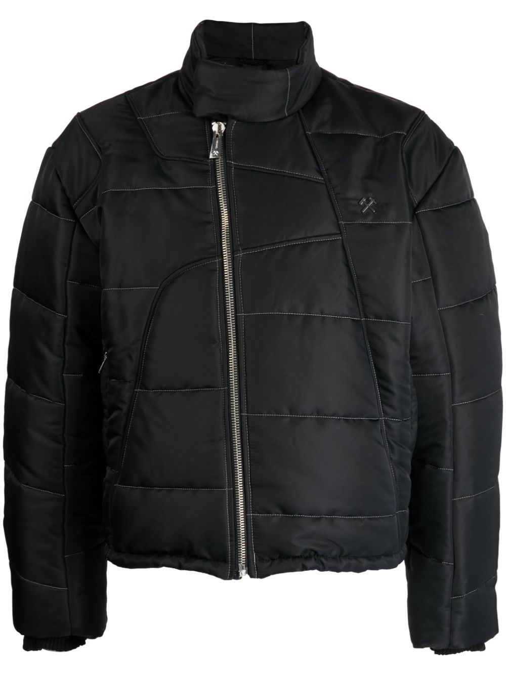 Zaman quilted jacket Highlights - Black - Recycled polyester/recycled polyamide - Quilted finish - Logo plaque - Contrast stitching - High neck - Off-centre front zip fastening - Long sleeves - Ribbed cuffs - Two side zip-fastening pockets - Straight hem Imported Composition Lining: Viscose 100% Filling: Recycled Polyester 100% Outer: Recycled Polyamide 100% SIZE & FIT Model measurements Height 6 ft 2 in(1.87 m) Bust/Chest 34.25 in(87 cm) Hips 36.22 in(92 cm) Waist 29.52 in(75 cm) FittingInformation Designed for a boxy fit, intended for a loose fit throughout The internal drawstring at the hem allows for fitted preferences Made from a padded non-stretch fabric, giving it no natural elasticity This piece fits true to size – take your usual size Washing instructions Dry Clean Only
