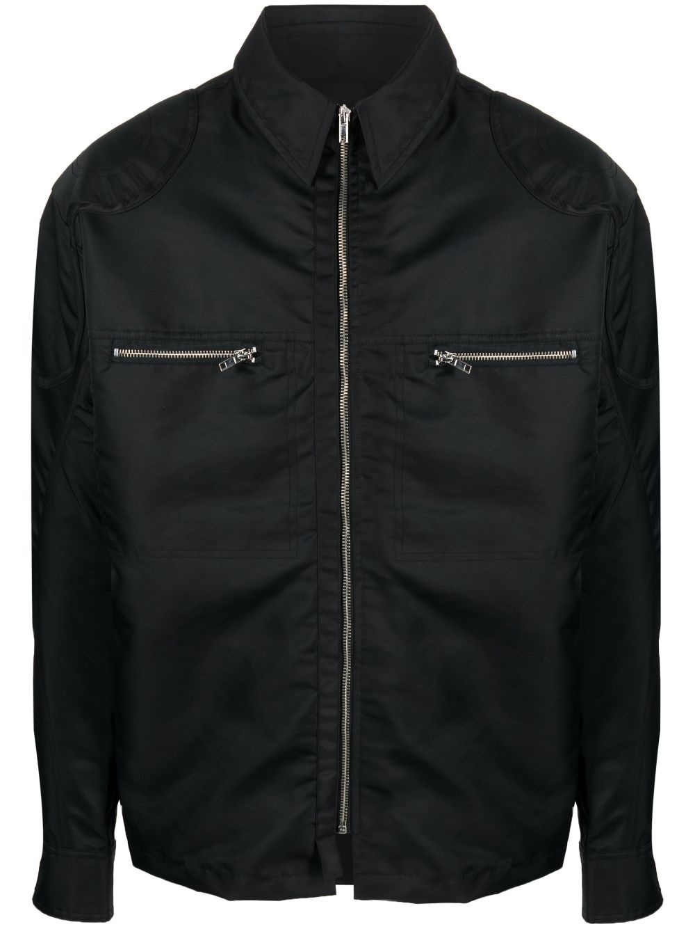 zip-up shirt jacket Highlights - Black - Shoulder patches - Pointed flat collar - Front zip fastening - Long sleeves - Two zip-fastening chest pockets Imported Composition Recycled Nylon 100% SIZE & FIT Model measurements Height 6 ft 2 in(1.87 m) Bust/Chest 38.18 in(97 cm) Hips 36.61 in(93 cm) Waist 29.13 in(74 cm) FittingInformation Designed to be unstructured, offering a loose fit throughout Made from a lightweight non-stretch fabric This piece fits true to size – take your usual size Washing instructions Machine Wash