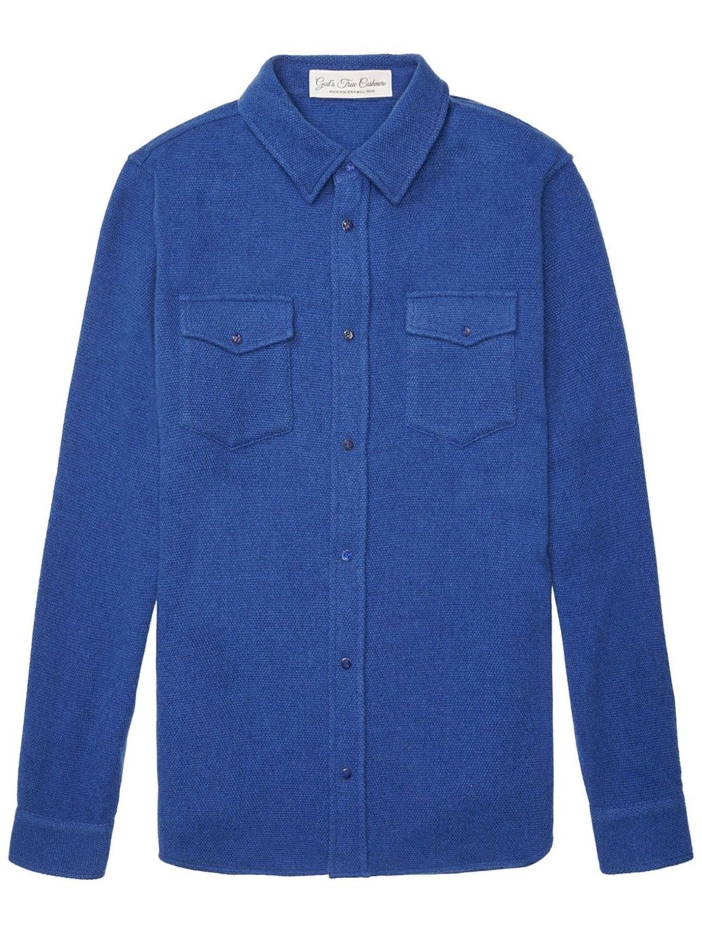 cashmere overshirt Highlights - Royal blue - Front press-stud fastening - Two chest flap pockets - Press-stud fastening cuffs - When buying this unisex item, keep in mind that it is graded in standard men's sizing. Made in Italy Composition Cashmere 100%, Lapis Lazuli 100% Washing instructions Read Manufacturer Guidelines