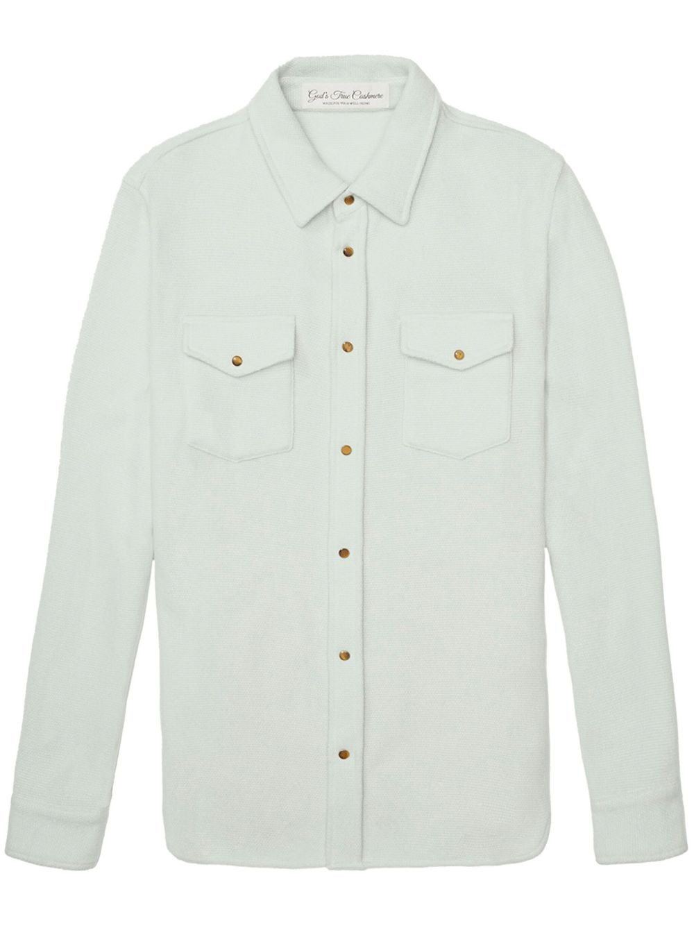 cashmere shirt Highlights - Mint green - Front press-stud fastening - Two chest flap pockets - Buttoned cuffs - When buying this unisex item, keep in mind that it is graded in standard men's sizing. Made in Italy Composition Tiger eye 100%, Cashmere 100%