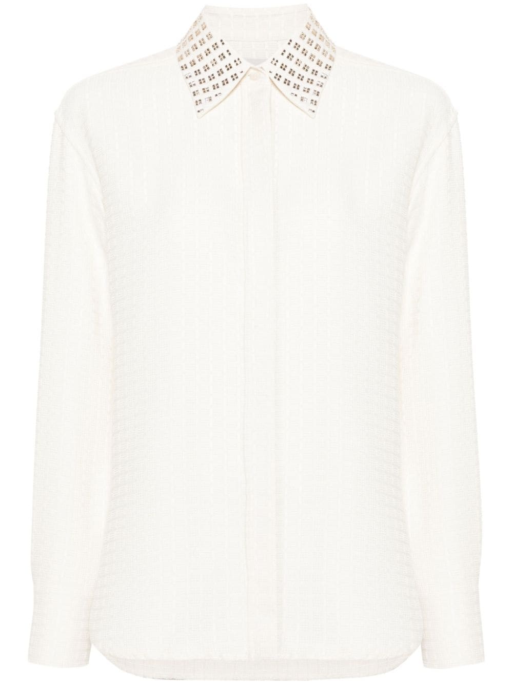 Women's viscose and cotton blend shirt with crystal-embellished collar