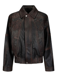 appliqued leather jacket Highlights - Dark brown - Appliqued - Ribbed hem - Front button fastening - Long sleeves - Front welt pockets Made in Italy Composition Lining: Cotton 100%, Viscose 100% Outer: Calf Leather 100% Washing instructions Read Manufacturer Guidelines