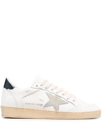 Ball Star leather sneakers With an '80s-inspired silhouette, Golden Goose's Ball Star sneakers offer a basketball-style aesthetic. This pair boasts a further creative touch thanks to all-over distressed effect and the brand's signature star patch. Highlights - White/black/grey - Calf leather - Distressed effect - Round toe - Front lace-up fastening - Signature star patch - Branded insole - Flat rubber sole Made in Italy Composition Outer: Calf Leather 100% Lining: Fabric 100%, Calf Leather 100% Sole: Rubber 100% SIZE & FIT Measurement HEEL 1.96 in(5 cm) Sole height 0.59 in(1.5 cm)