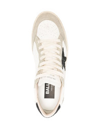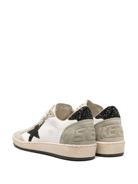 Ball Star leather sneakers Inspired by the '80s, Golden Goose's Ball Star sneakers combine skateboarding elements with American college energy. Crafted from Italian leather, this pair features a panelled design, highlighted by the brand's iconic star patch on the side. Highlights - Off-white/black/taupe grey - Leather - Colour-block panelled design - Signature star patch to the sides - Logo-print tongue - Front lace-up fastening - Round toe - Contrasting branded heel counter - Flat rubber sole Made in Italy Composition Leather 100% SIZE & FIT Measurement HEEL 1.18 in(3 cm) Sole height 0.78 in(2 cm)