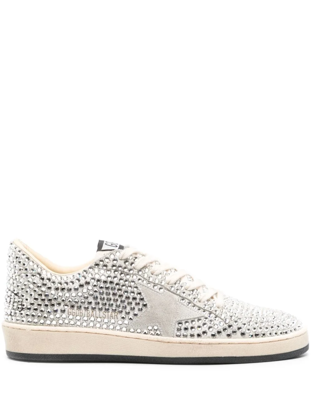 Ball Star rhinestone -embellished suede sneakers As the name suggests, the Ball Star sneakers take inspiration from 80s basketball styles. This pair is embellished with rhinestones alongside classic Golden Goose detailing such as the star patch to the side. Highlights - Light grey - Calf suede - Star patch detail - Rhinestone embellishment - Round toe - Front lace-up fastening - Flat rubber sole Made in Italy Composition Suede 100% SIZE & FIT Measurement HEEL 1.18 in(3 cm) Sole height 0.78 in(2 cm)