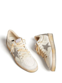 Ballstar leather sneakers With an '80s-inspired silhouette, Golden Goose's Ball Star sneakers offer a basketball-style aesthetic. This pair boasts a further creative touch thanks to all-over distressed effect and the brand's signature star patch. Highlights - White - Calf leather/cotton blend - Signature star patch to the sides - Logo stamp at side - Distressed finish - Contrasting heel counter - Round toe - Front lace-up fastening - Logo patch at the tongue - Branded insole - Rubber sole Made in Italy Composition Outer: Sheepskin 74%, Calf Leather 10%, Polyamide 10%, Goat Skin 6% Lining: Cotton 54%, Calf Leather 30%, Polyester 10%, Sheepskin 5%, Polyurethane 1% Sole: Rubber 100%