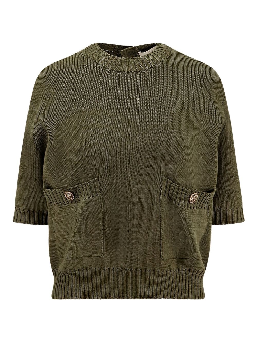 button-detailed pocket sweater Highlights - Olive green - Short sleeves - Button fastening - Patch pockets - Ribbed hem - Gold-tone buttons Made in Italy Composition Cotton 100%