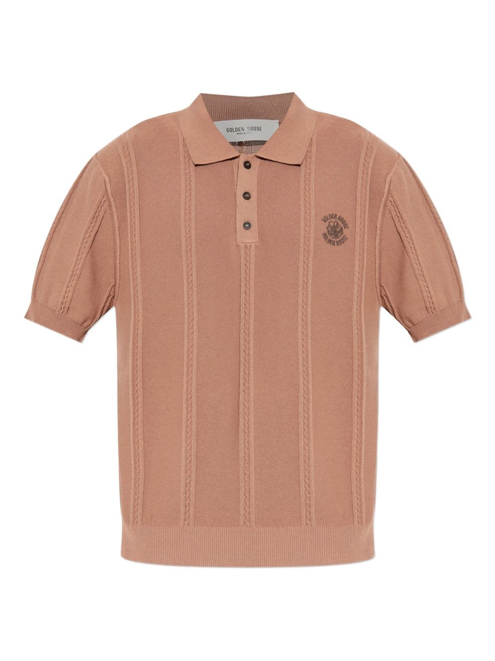 cable-knit polo shirt Highlights - Light brown - Cable knit - Short sleeves - Polo collar - Button fastening - Logo embroidery Made in Italy Composition Polyester 50%, Cotton 50%