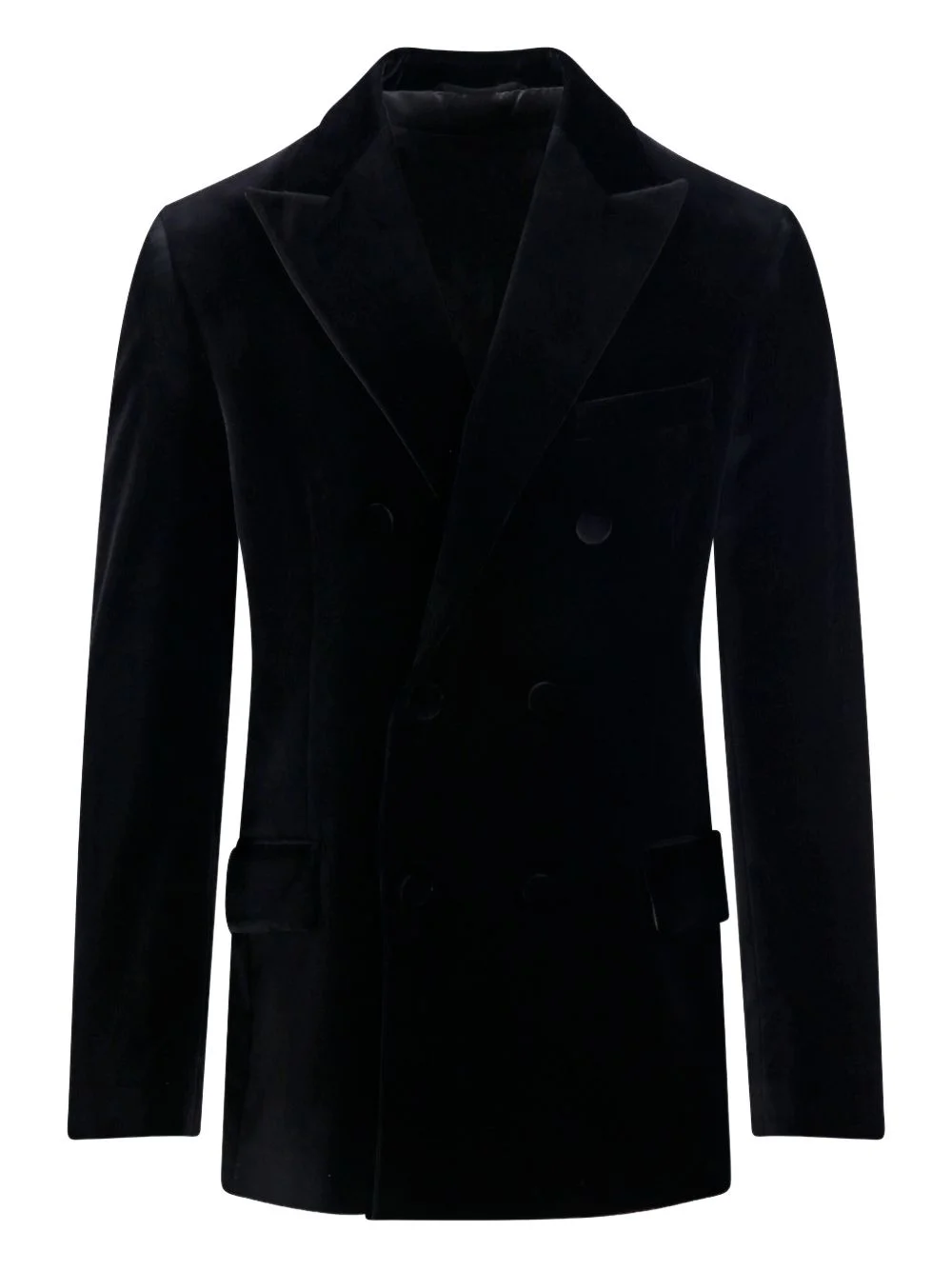 Men’s double-breasted blazer in black velvet with black satin lapels