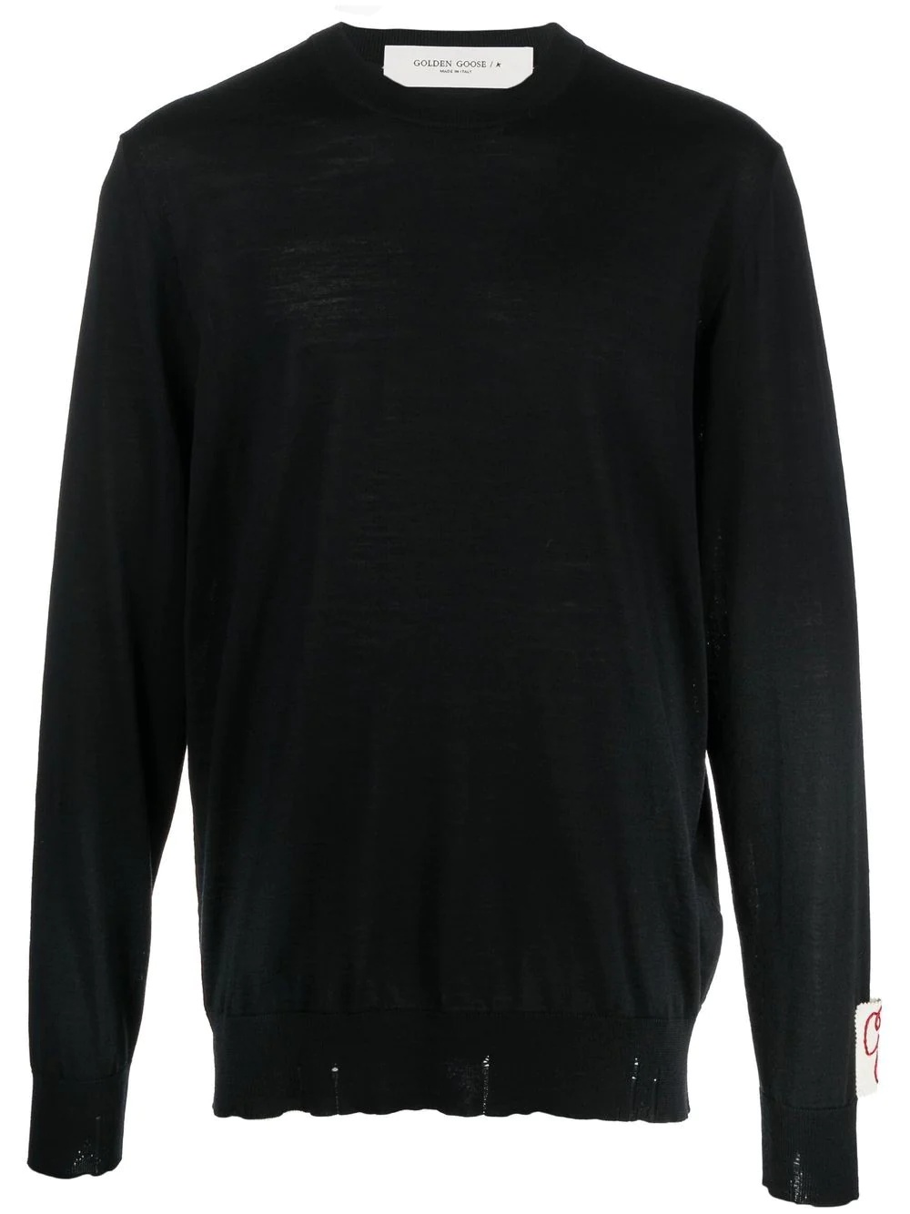 crew-neck virgin wool jumper black virgin wool ribbed-knit edge crew neck long sleeves Made in Italy Composition Virgin Wool 100% SIZE & FIT Model measurements Height 6 ft 1 in(1.85 m) Bust/Chest 31.88 in(81 cm) Hips 33.07 in(84 cm) Waist 26.77 in(68 cm) FittingInformation This piece fits true to size. We recommend you get your regular size Cut for a relaxed fit Made with a mid-weight fabric