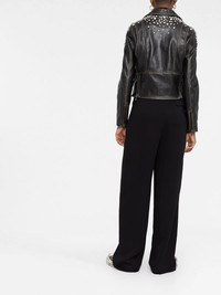 crystal-embellished leather jacket Golden Goose updates a classic silhouette with a contemporary aesthetic with this leather jacket. This design is defined by crystal embellishment and a distressed finish, reminiscent of the brand's expert Italian craftsmanship and attention to detail. Made in Italy Composition Lining: Cotton 100%, Polyester 100% Outer: Calf Leather 100% SIZE & FIT Model measurements Height 5 ft 11 in(1.8 m) Bust/Chest 31.49 in(80 cm) Hips 36.61 in(93 cm) Waist 24.4 in(62 cm) Measurement CHEST 36.22 in(92 cm) SLEEVE LENGTH 24.4 in(62 cm) LENGTH 21.25 in(54 cm) FittingInformation This piece fits true to size. We recommend you get your regular size Cut for a slim fit Made with a mid-weight non-stretch fabric Washing instructions Specialist Cleaning