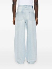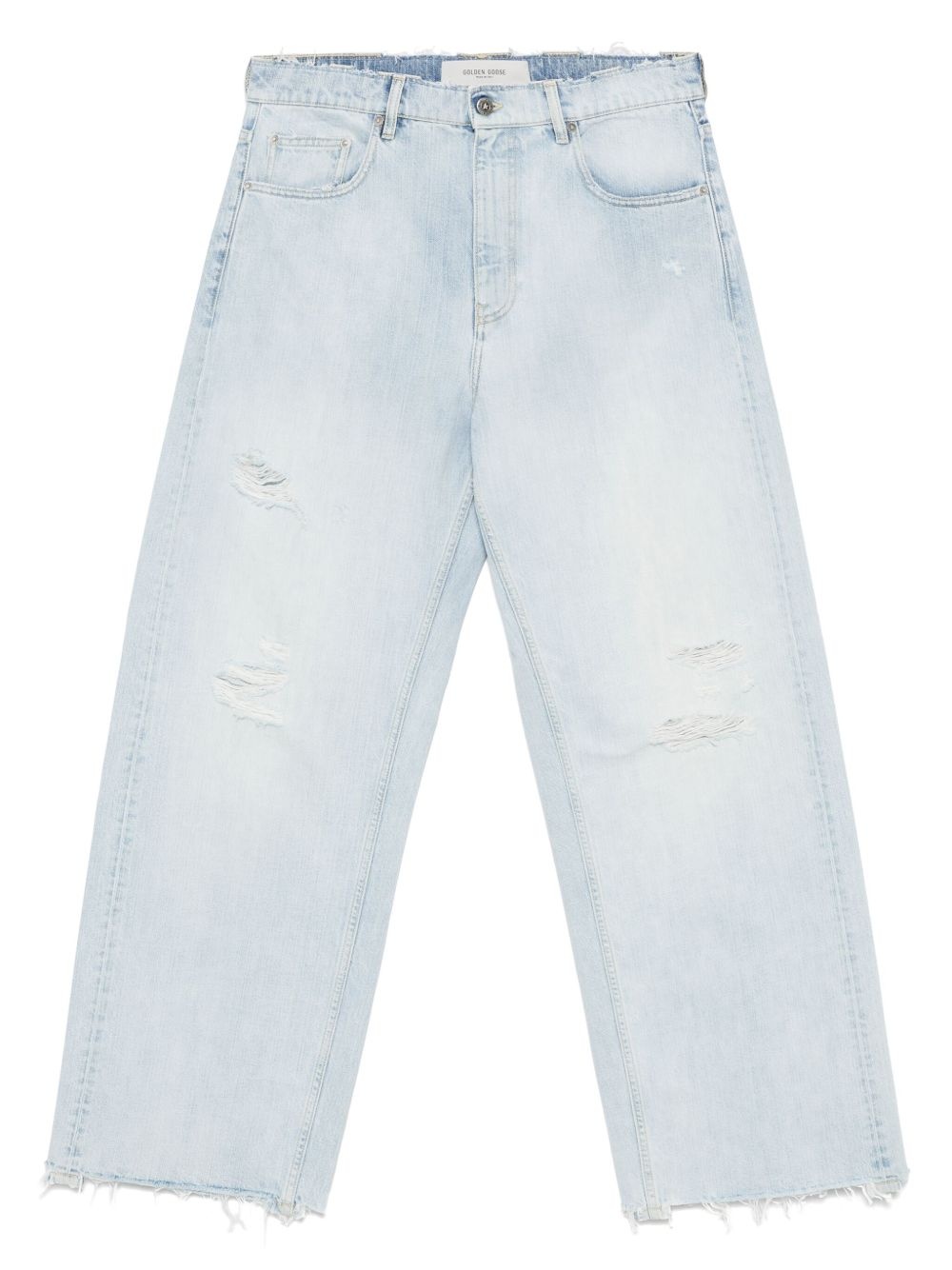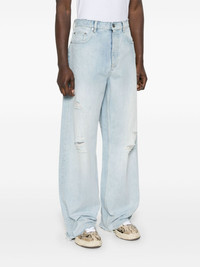 distressed jeans Highlights - Light blue - Front button and zip fastening - Belt loops - Classic five pockets Made in Italy Composition Outer: Cotton 100% Lining: Polyester 68%, Cotton 35% SIZE & FIT Model measurements Height 6 ft 0 in(1.84 m) Bust/Chest 35.82 in(91 cm) Hips 37 in(94 cm) Waist 28.34 in(72 cm) FittingInformation Designed with a wide leg, these jeans offer a loose and roomy fit Sturdy and hard-wearing, this denim piece offers no stretch Washing instructions Machine Wash