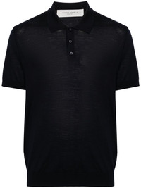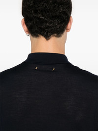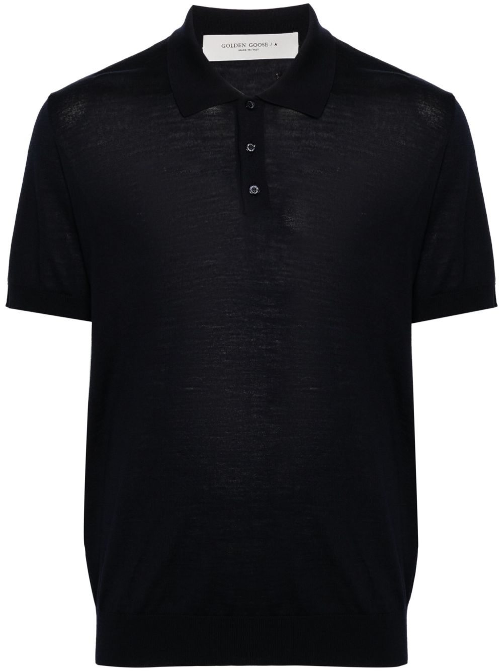fine-knit polo shirt Golden Goose is synonymous with craftsmanship and modernity, as this navy blue polo shirt demonstrates. Crafted from wool, it's decorated at the left sleeve with an instantly recognisable logo patch. Highlights - Navy blue - Virgin wool - Fine knit - Polo collar - Short sleeves - Ribbed cuffs and hem - Logo plaque to the rear - Short front button fastening Made in Italy Composition Virgin Wool 100% SIZE & FIT Model measurements Height 6 ft 1 in(1.85 m) Bust/Chest 35.82 in(91 cm) Hips 37.79 in(96 cm) Waist 29.13 in(74 cm) FittingInformation Designed for a regular fit, this polo shirt offers a comfortable loose fit throughout the body Made with a midweight knit, this piece offers some stretch This piece fits true to size – take your usual size Washing instructions Hand Wash