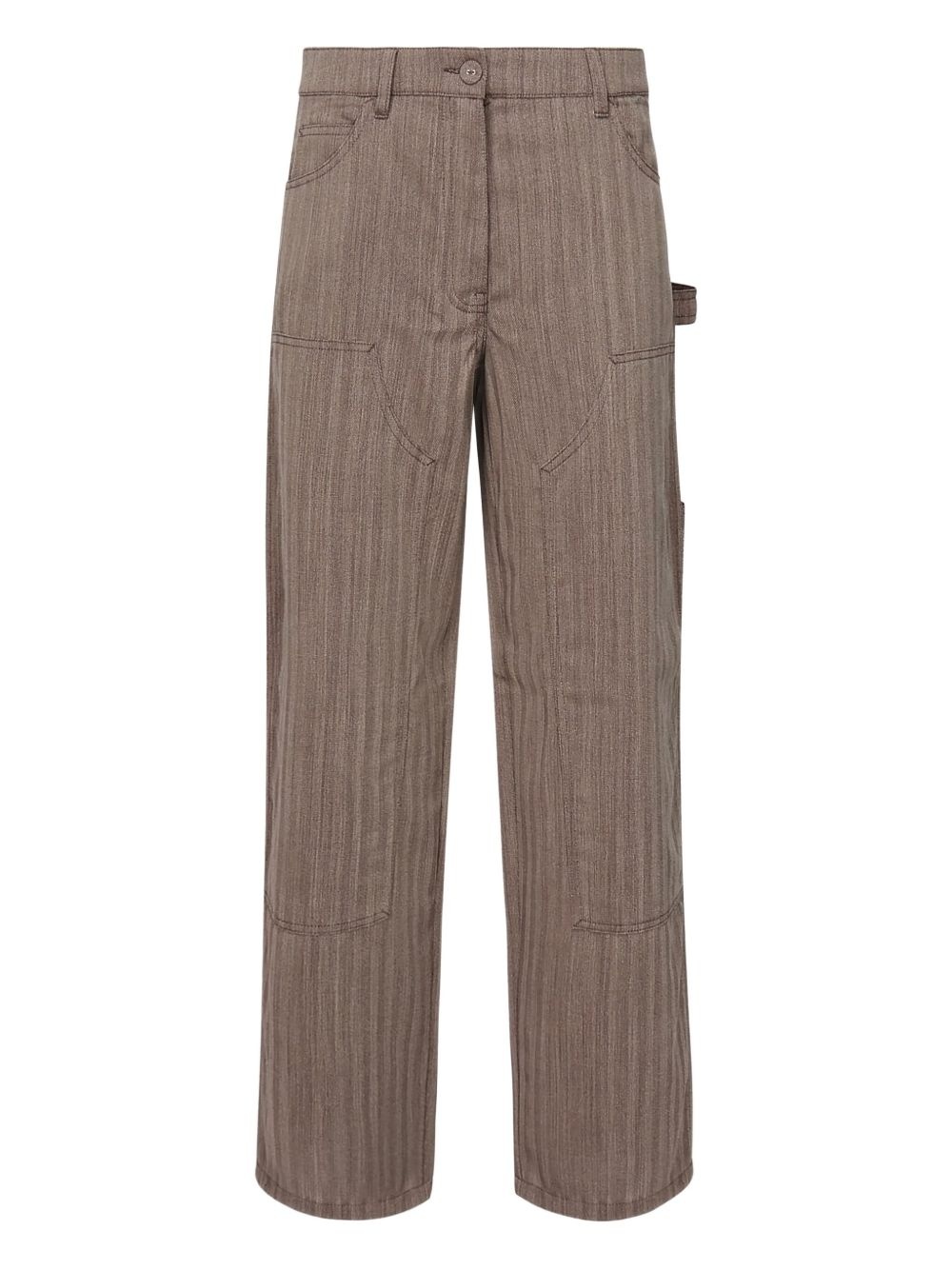 five-pocket trousers Highlights - Brown - Chevron pattern - Multiple pockets - Button fastening - Utility pockets Made in Italy Composition Virgin Wool 83%, Polyamide 17% Washing instructions Read Manufacturer Guidelines