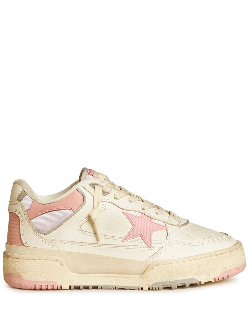 Forty2 leather sneakers Highlights - White/rose pink - Buffalo leather - Colour-block panelled design - Distressed finish - Front lace-up fastening - Star patch detail - Logo patch at the tongue - Round toe - Flat rubber sole Made In Italy Composition Lining: Cotton 100% Outer: Buffalo Leather 100% Sole: Rubber 100%