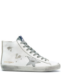Francy high-top sneakers It's time to be F(r)ancy! Designed with a signature star patch to the side, these Golde Goose sneakers will make your feet stand out from miles away. Shine on. Highlights - White - Rubber - Round toe - Front lace-up fastening - Short side zip fastening - Logo patch to the side - Signature star patch to the sides - Flat rubber sole Made in Italy Composition Leather 100% SIZE & FIT FittingInformation This piece fits large – take one size down Measurement HEIGHT 4.33 in(11 cm) Sole height 0.59 in(1.5 cm) HEEL 0.98 in(2.5 cm)