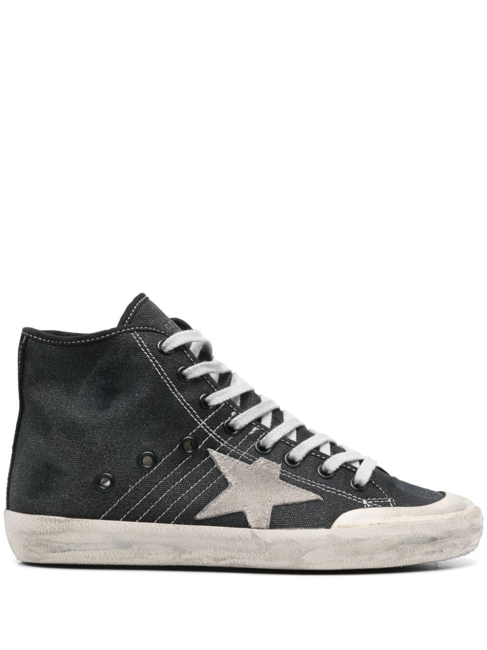 Francy Penstar Classic sneakers Highlights - Black - Cotton - Canvas - Front lace-up fastening - Side zip fastening - Eyelet detailing - Signature star patch to the sides - Logo-print tongue - Round toe - Branded insole - Rubber sole Made in Italy Composition Suede 100% SIZE & FIT Measurement HEEL 0.98 in(2.5 cm) HEIGHT 3.93 in(10 cm) Sole height 0.78 in(2 cm)
