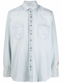 Golden Collection bleached denim shirt sky blue cotton stud detailing bleached effect classic collar long sleeves two chest patch pockets Made in Italy Composition Cotton 100% SIZE & FIT Model measurements Height 6 ft 1 in(1.86 m) Bust/Chest 35.43 in(90 cm) Hips 35.43 in(90 cm) Waist 29.92 in(76 cm) FittingInformation This piece fits true to size. We recommend you get your regular size Cut for a loose fit Made with a mid-weight non-stretch fabric Washing instructions Machine Wash