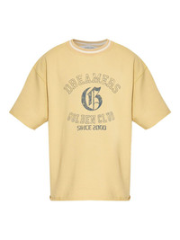 Men's oversized yellow cotton T-shirt with blue print