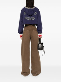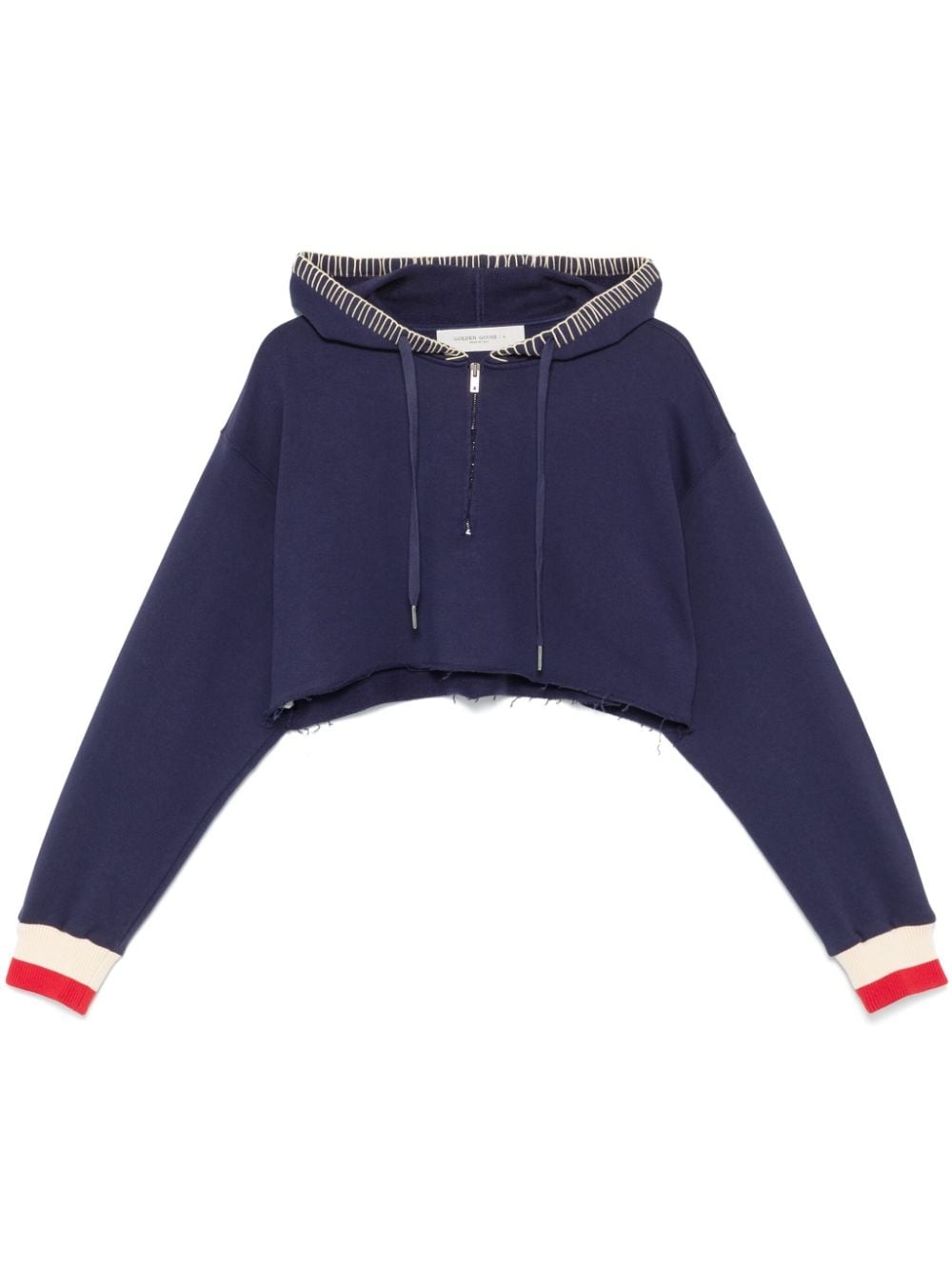 Dark blue cropped sweatshirt with zip fastening and embroidered hood