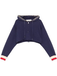 half-zip cropped hoodie Highlights - Violet blue - Cotton - Jersey texture - Half front zip fastening - Cropped - Drawstring hood - Whipstitch trim - Long sleeves - Ribbed cuffs - Embroidered logo to the rear - French terry lining - Raw-cut hem Made In Italy Composition Polyamide 100%, Cotton 100%, Polyester 100% SIZE & FIT Model measurements Height 5 ft 10 in(1.78 m) Bust/Chest 33.46 in(85 cm) Hips 36.22 in(92 cm) Waist 23.22 in(59 cm) FittingInformation Designed for an oversized fit, offering additional room throughout Cropped in length Made from a midweight non-stretch fabric, this piece offers minimal elasticity when worn