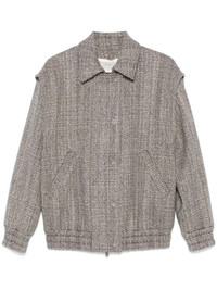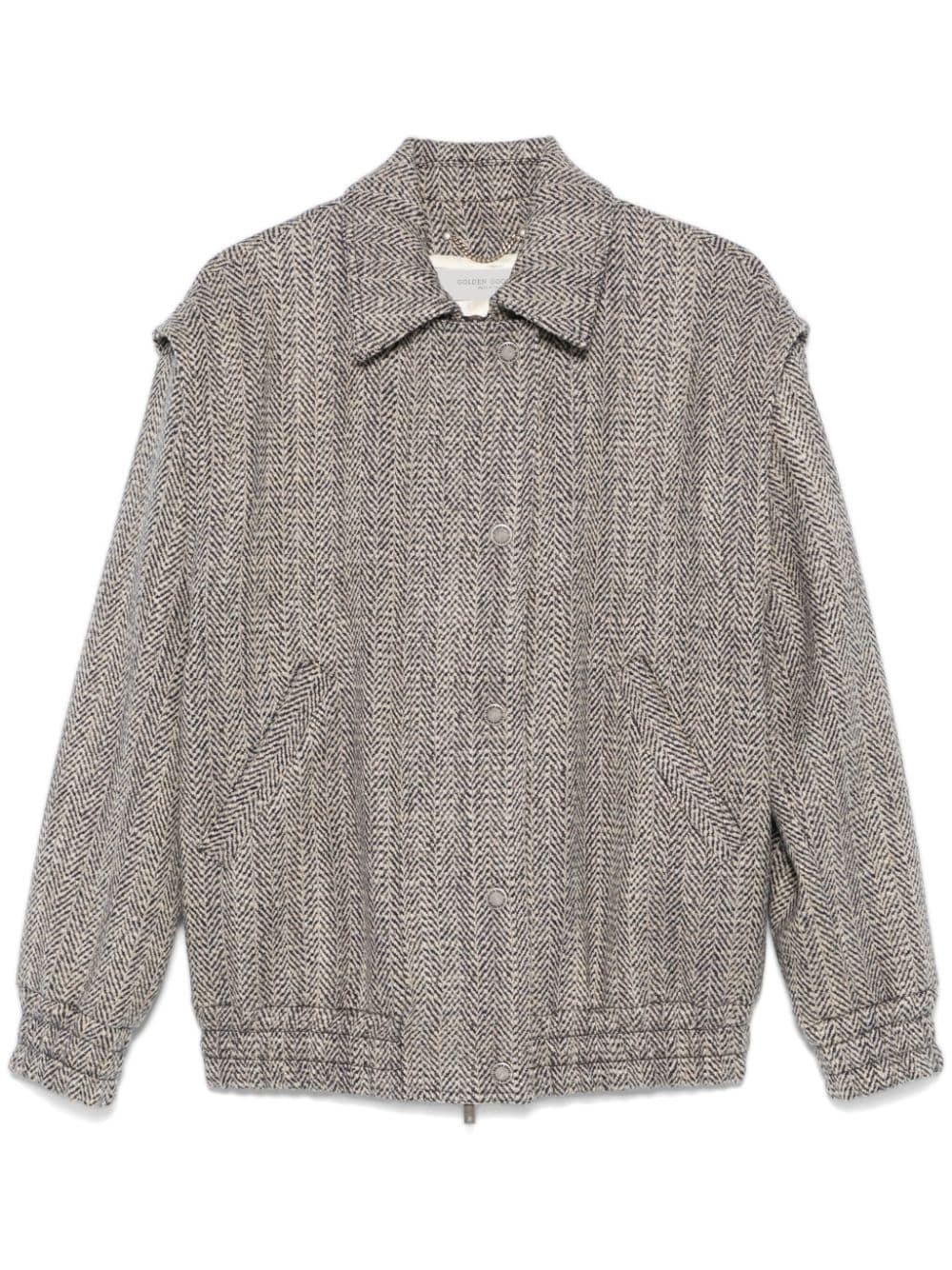 herringbone-pattern jacket Highlights - Black/white - Wool blend - Herringbone pattern - Slub texture - Front press-stud and zip fastening - Spread collar - Drop shoulder - Long sleeves - Elasticated cuffs - Two front welt pockets - Logo-jacquard lining - Elasticated hem Made in Italy Composition Outer: Wool 69%, Linen/Flax 13%, Polyamide 13%, other fibers 3%, Polyester 2% Lining: Cotton 100%, Viscose 100% SIZE & FIT Model measurements Height 5 ft 10 in(1.77 m) Bust/Chest 30.7 in(78 cm) Hips 35.03 in(89 cm) Waist 23.62 in(60 cm) FittingInformation Designed to be unstructured, offering a loose fit throughout The elasticated hem allows for movement and a comfortable fit Made from a midweight non-stretch fabric