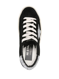 Hi Star suede sneakers Highlights - Black - Calf suede - Signature star patch to the sides - Logo-print tongue - Contrasting branded heel counter - Glitter detailing - Front lace-up fastening - Round toe - Branded leather insole - French terry lining - Flat rubber sole Made in Italy Composition Leather 100% SIZE & FIT Measurement HEEL 1.18 in(3 cm) Sole height 1.18 in(3 cm)