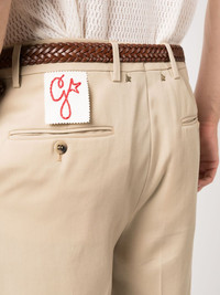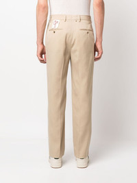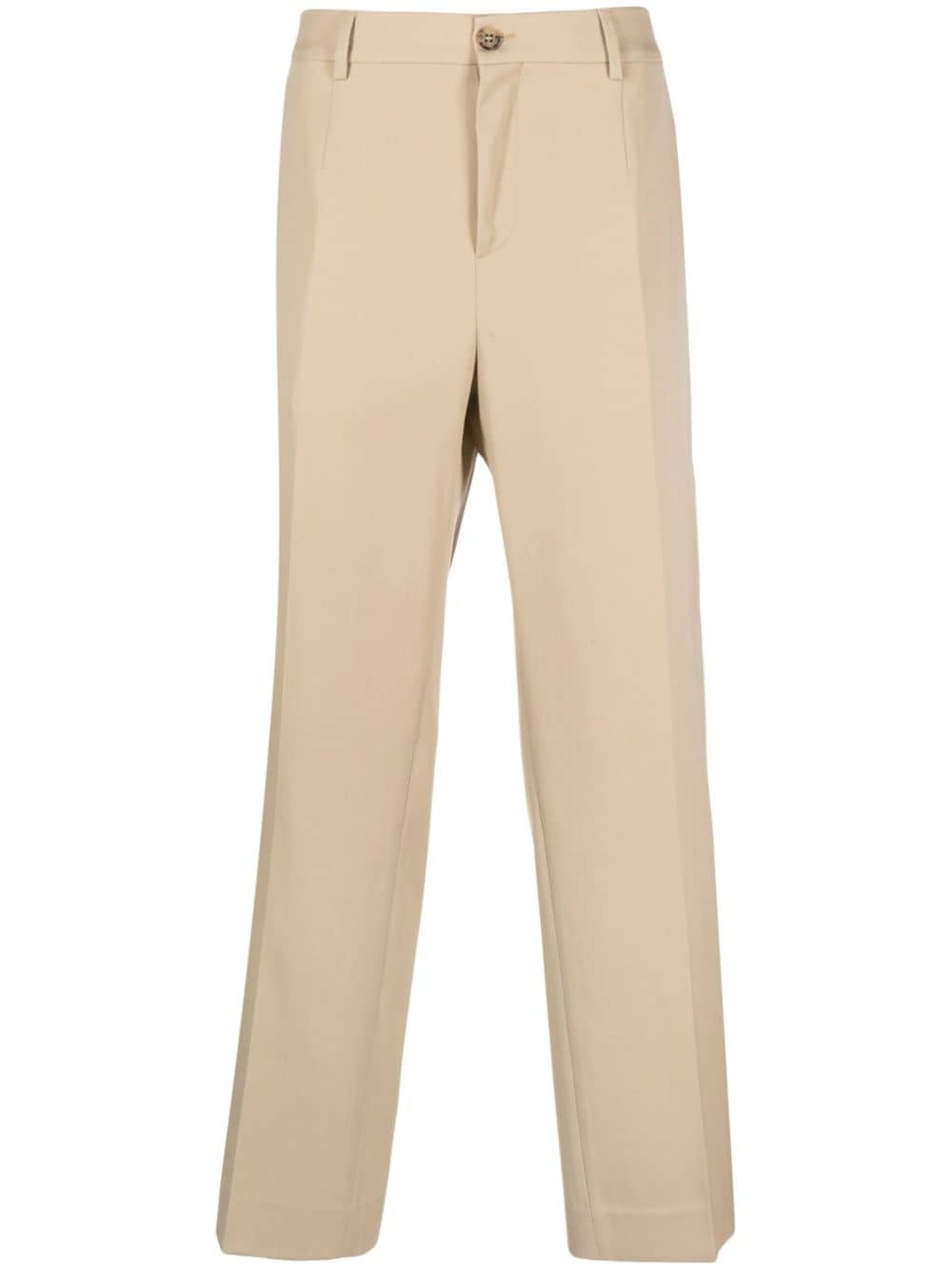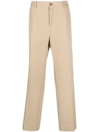 high-waist gabardine trousers Highlights - Sand beige - Virgin wool - Gabardine weave - Star stud detailing - Logo patch to the rear - Belt loops - Front button and zip fastening - Pressed crease - Two side slit pockets - Two rear welt pockets Made in Italy Composition Lining: Polyester 65%, Viscose 64%, Cupro 36%, Cotton 35% Outer: Virgin Wool 100% SIZE & FIT Model measurements Height 6 ft 2 in(1.87 m) Bust/Chest 36.41 in(92.5 cm) Hips 35.43 in(90 cm) Waist 29.52 in(75 cm) FittingInformation Designed for a straight-leg, allowing for an unrestricted and comfortable fit over the leg Made from a midweight non-stretch fabric This piece fits true to size – take your usual size