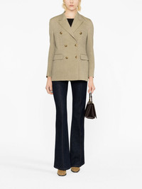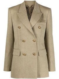 jacquard double-breasted blazer Made from virgin wool, this double-breasted blazer by Golden Goose is enhanced with delicate jacquard. Showcasing a classic take on tailoring, the structured silhouette is punctuated with embossed gold-tone buttons down the front. Highlights - Gold-tone - Virgin wool - Patterned jacquard - Peak lapels - Double-breasted button fastening - Chest flap pocket - Two front flap pockets - Shoulder pads - Long sleeves - Buttoned cuffs - Straight hem Made in Italy Composition Outer: Virgin Wool 100%, Wool 67%, Viscose 33% Lining: Polyester 55%, Viscose 45% SIZE & FIT Model measurements Height 5 ft 9 in(1.75 m) Bust/Chest 31.88 in(81 cm) Hips 33.85 in(86 cm) Waist 24.01 in(61 cm) Measurement SLEEVE LENGTH 16.92 in(43 cm) LENGTH 27.95 in(71 cm) WAIST 37 in(94 cm) BUST 37 in(94 cm) Shoulder Width 15.35 in(39 cm) FittingInformation Designed for a slim fit that sits just away from the body offering a close yet comfortable fit The internal shoulder pads offer a structured shape Made from a midweight non-stretch fabric This piece fits true to size – take your usual size