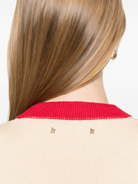 Women's cardigan in cream with red stripes